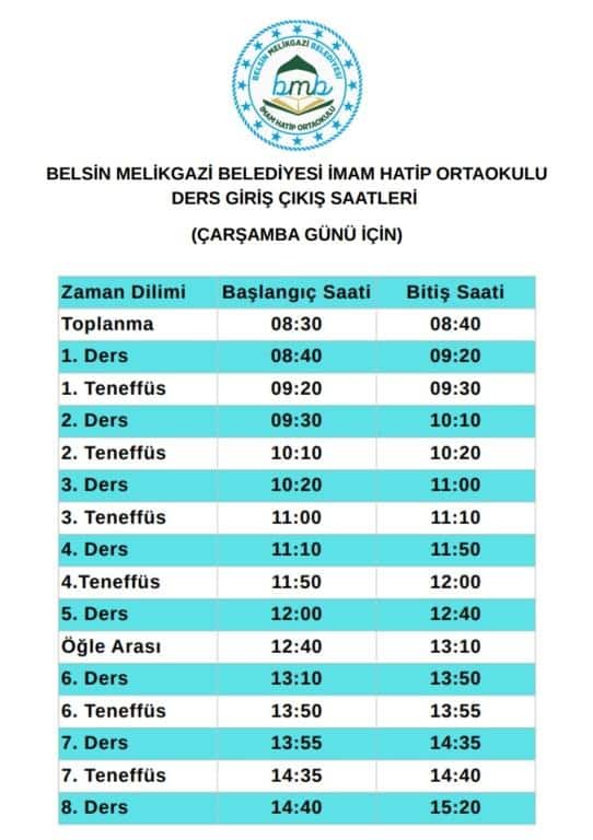 ZAMAN ÇİZELGESİ ÇARŞAMBA GÜNÜ İÇİN